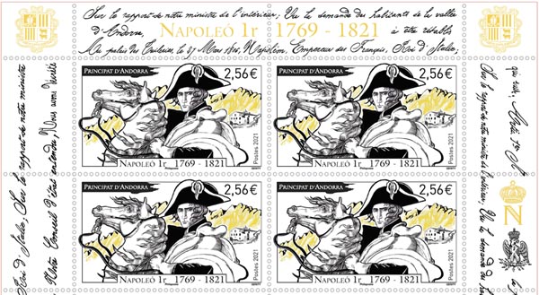 The block of stamps Napoleon I (1769-1821) will be on sale on Saturday 17 April in Ajaccio, Fontainebleau and Paris :